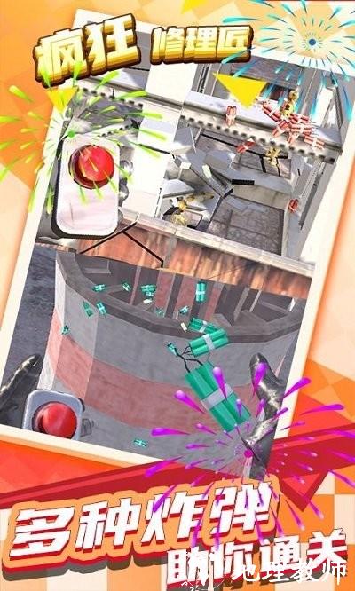 疯狂修理匠是一款集休闲、益智与解压于一体的安卓游戏,以其独特的玩法和丰富的游戏内容赢得了广大玩家的喜爱。在这款游戏中,玩家将扮演一名特殊的“修理匠”,但这里的修理并非传统意义上的修补,而是充满了破坏与重建的乐趣。玩家需要使用各种炸药和爆破工具来摧毁高楼大厦等建筑物,随后收集材料,按照自己的想法重新构建它们。游戏过程中,玩家不仅可以体验到破坏带来的快感,还能享受到建造的成就感。