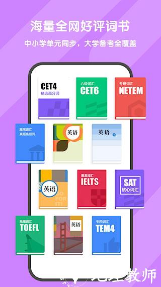 2、词库资源覆盖全学段,包含基础教育至专业考试所需词汇。支持小学到托福雅思等上百种词表,满足不同层次学习需求。