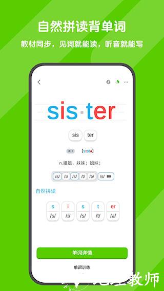 3、多元化训练模式包含看词选义、听音辨词、拼写测试等七种题型。支持例句跟读与语音测评,强化听说读写综合能力。