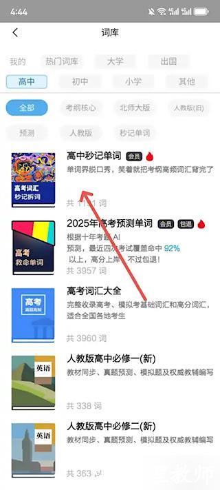 3、从学段分类中定位高中阶段词书集合,按需筛选所需词汇教材