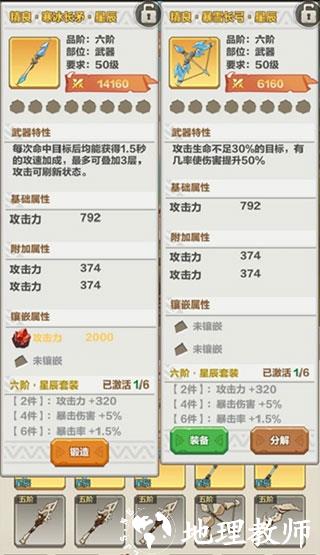 除此外,装备还有套装效果,集齐2、4、6件同套装时,还会有不一样的加成效果。