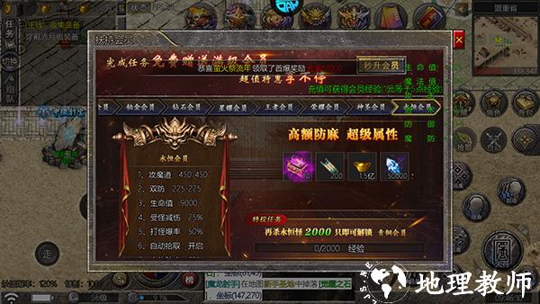 游戏内所有会员无需充值解锁,仅需通过打怪即可获得赠送;坚持战斗积累打怪次数,轻松提升会员等级,解锁更多特权。