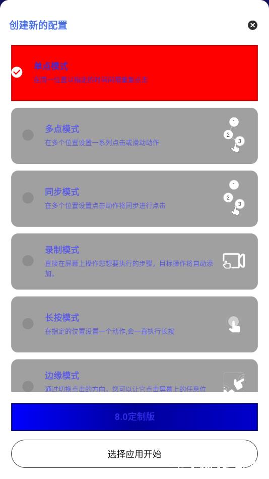 3、在功能界面中选择所需模式,确认后点击启动按钮,激活连点功能。