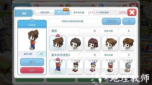 2、店员换装:这个在前期跟着任务走买的衣服就行,后期金币多了再换也可以。