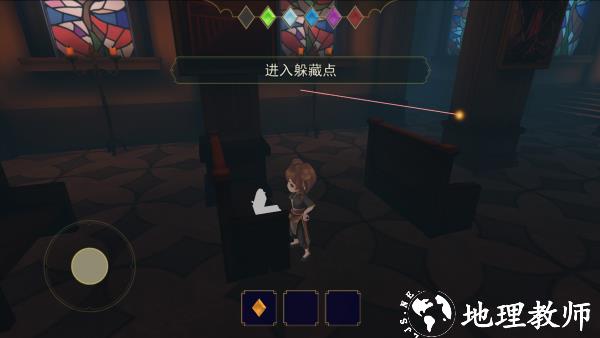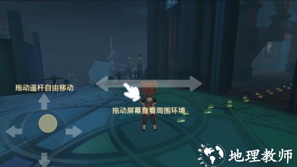 3、进入游戏场景后,通过左手左右滑动屏幕控制人物移动,右手拖动屏幕调整视角,以此探索地图与观察环境。