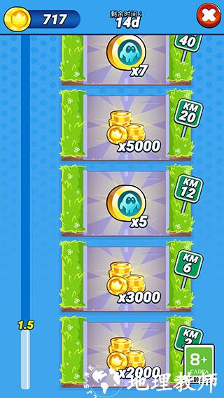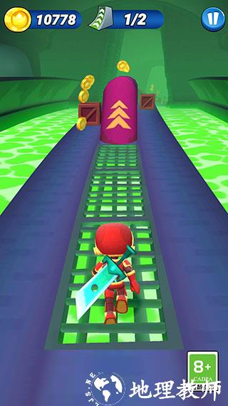 2、运用丰富强化道具助力:提供火箭、弹跳靴、磁铁、双倍金币等多种实用强化道具,这些道具能在奔跑过程中提供关键帮助。只需操控角色跑向这些道具即可完成收集,收集道具的同时还能额外获得游戏分数加成。