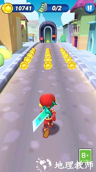 2、开始游戏后,左右滑动屏幕控制人物左右移动,向上滑动控制人物跳跃,向下滑动控制人物滑铲。