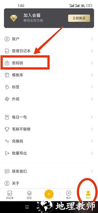 1、在移动设备上启动应用,进入个人中心并选择密码保护功能。