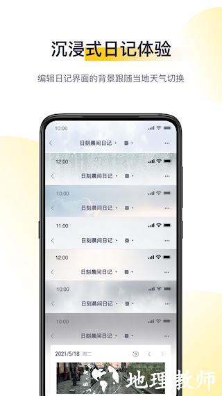2、沉浸式情景体验:编辑界面的背景会跟随当地的实时天气状况自动切换。此项设计增强了记录的沉浸感,让记录环境与外部世界产生联动。