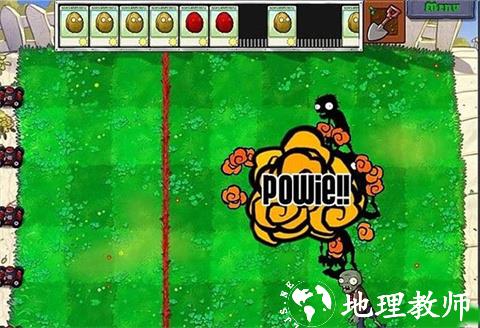 2、让僵尸先过来,上面的墙果快攒满的时候,进行投掷。红的不要乱扔,那可以炸一片,而且是秒杀效果。