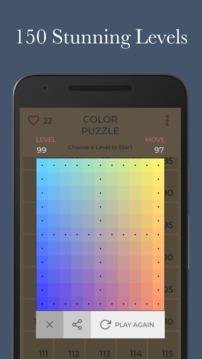 ColorPuzzle手机版是一款极具趣味性和挑战性的安卓游戏。游戏画面色彩绚丽,以各种色彩方块为主题。玩家需要通过巧妙的移动和组合,将相同颜色的方块连接在一起消除。游戏关卡丰富多样,从简单到困难逐步递增,每一关都有独特的布局和挑战,能让玩家沉浸其中,享受色彩与策略交织的乐趣。