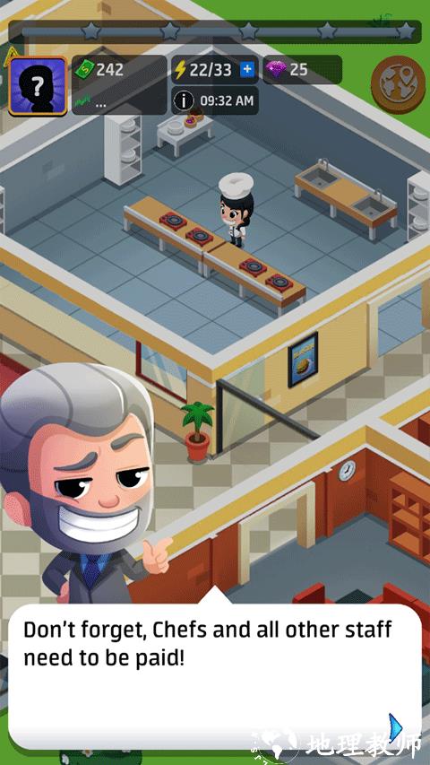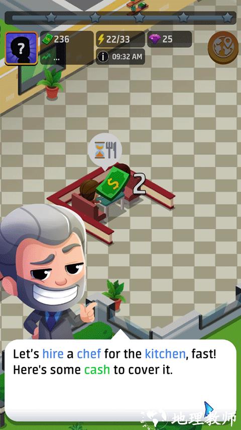 1、员工雇佣:点击对应区域花费资金雇佣厨师、服务员等,每个员工都有特定职责,保证餐厅各环节正常运转。