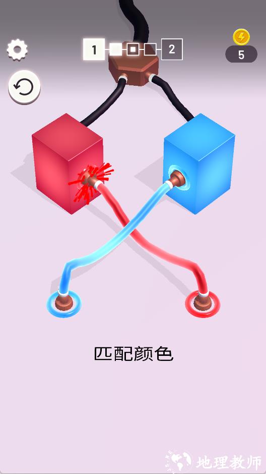 5、基础操作:手指按住电线一端拖动,将其接入对应接口形成闭合回路,注意同色对接,异色不交叉。