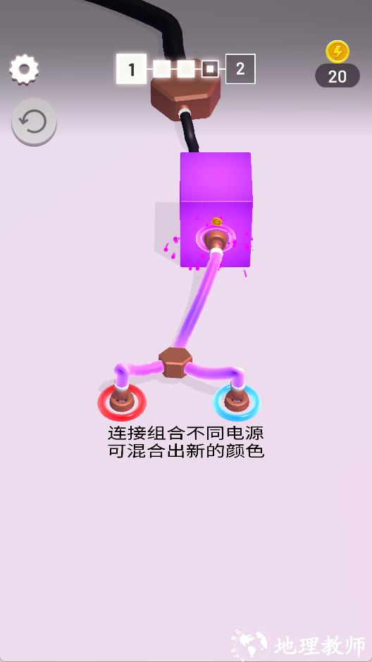 2、将颜色相同的音箱和电源连接起来,通过第二个小关卡
