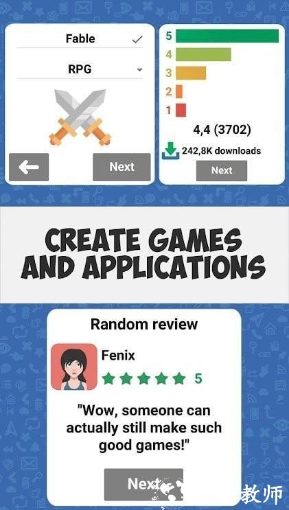 3、创建不同类型和方向的手机游戏和应用程序。您可以选择图形,游戏大小,图标等等。