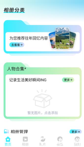 1、打开 APP 后,可快速整理手机相册内容,还能创建人物合集。