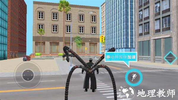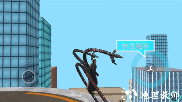 4、加载完成后进入操作界面,跟随新手指引;左下角为方向控制旋钮,右侧是技能按钮,按住指定按钮可实现 “跳跃” 动作。