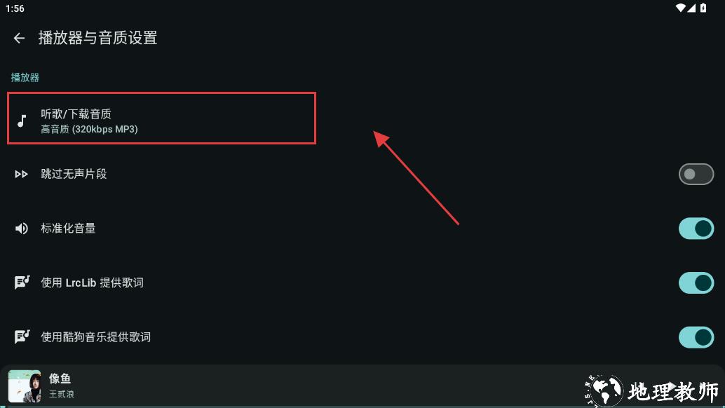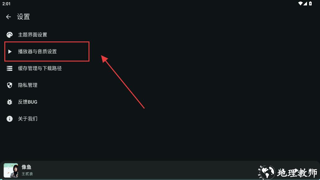 2、在设置选项中找到【播放器与音质设置】,点击进入音质相关配置页面。