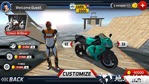 3、摩托升级改装:用比赛奖励解锁新车型,在车库升级性能、定制外观,让摩托车性能与颜值兼备。