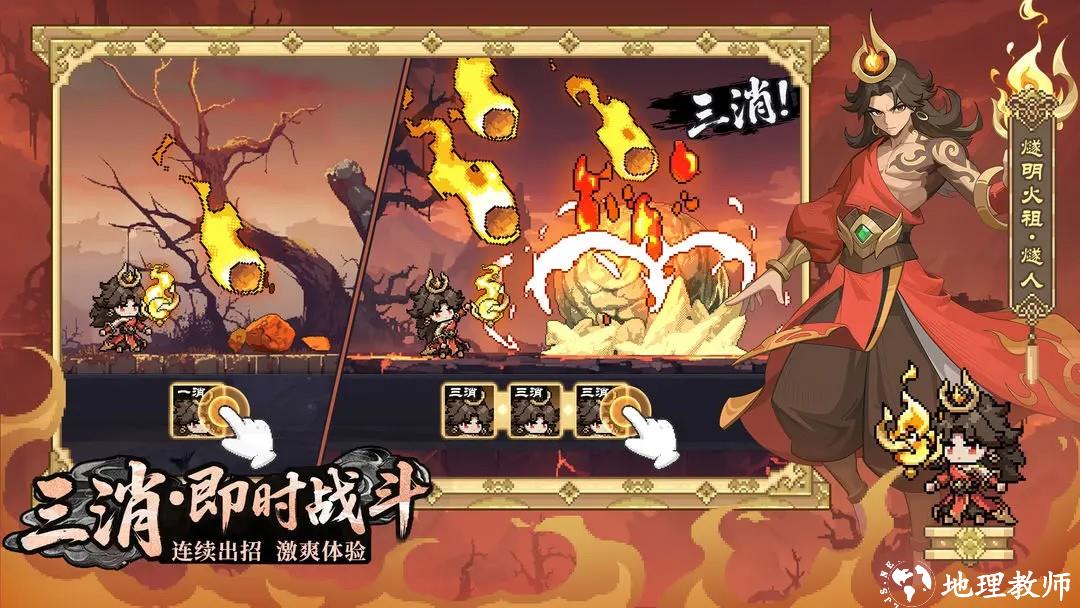3、玩法创新:三消即时战斗玩法新颖,结合英雄机制,三英雄一队,技能连携搭配有无限可能,战斗体验丰富。