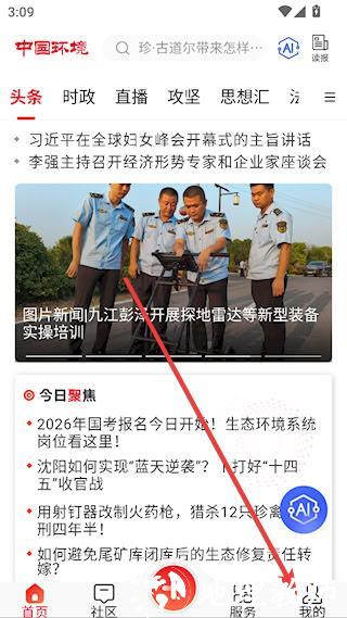 1、下载安装后点击进入中国环境APP首页,点击右下角【我的】