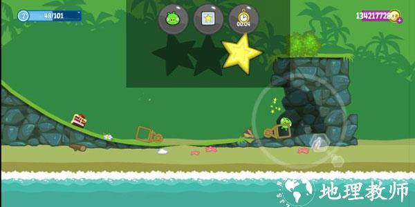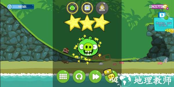 4、完成挑战:驾驶载具进入关卡,操控绿猪躲避陷阱、利用道具,让载具稳定行驶,达成收集或到达目标。