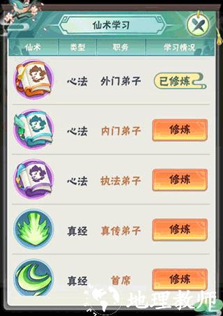 2、宗门仙术学习方法—— 学习仙术需解锁对应宗门职务,仙术本身学习无道具消耗,但提升职务需消耗宗门贡献,需在 “执法” 处提升职务以满足仙术解锁条件。