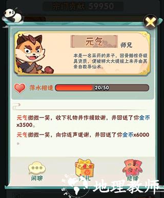 3、宗门奖励获取—— 基础奖励为心法、真经、法决;进阶奖励需通过与师兄师姐互动获得:赠礼提升好感度至 “志同道合” 解锁结缘,再通过传功获取道具。