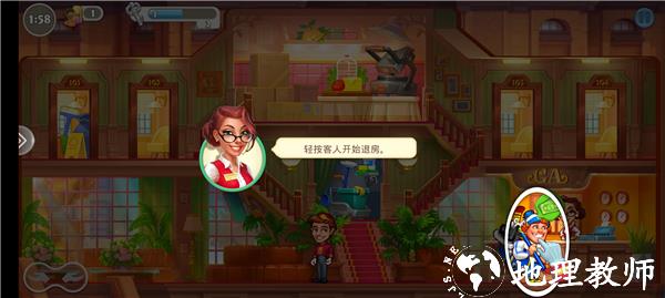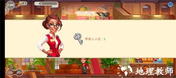 1、进入游戏首页,第一个关卡玩家需要帮助2位客人入住;