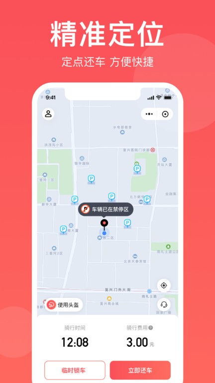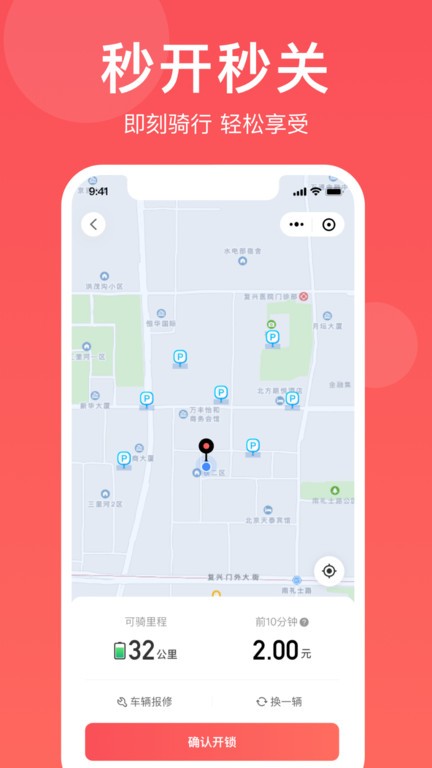 3、全程自助租车,用户无需进行人工认证过程,只需要注册并交纳一定押金,即可取用电动车共享出行。