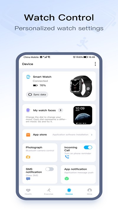 3、软件还有一些实用的功能,如天气预报、音乐控制、拍照控制、查找手机等,让你的生活更便捷。