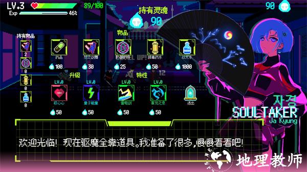 4、每击败两波敌人可进入商店,在商店内可消耗之前获取的灵魂,购买各类道具及进行多种升级,强化自身战力。