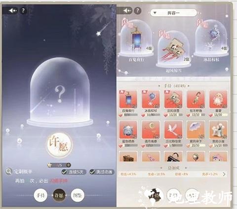 在该页面中入梦师可以通过消耗"许愿星"来抽取手持碎片,累计获得对应碎片到一定数量就可以解锁该手持,或提升手持等级。其中有机会一次性抽到完整手持所需的碎片数量哦!