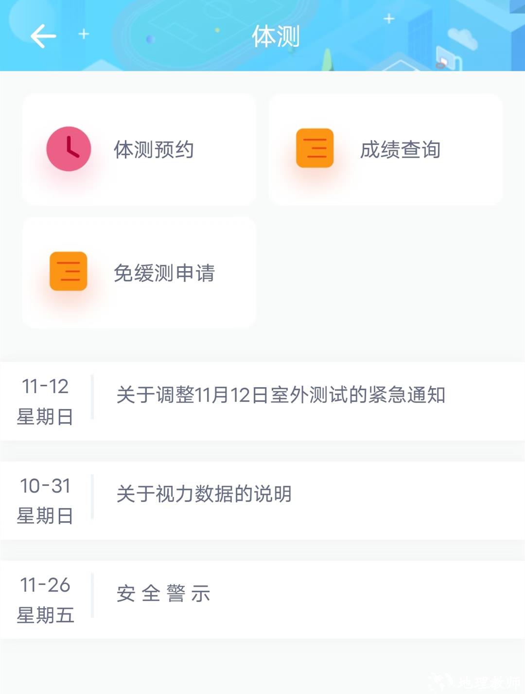 开启体质健康测试应用的“成绩查询”便能查阅。
