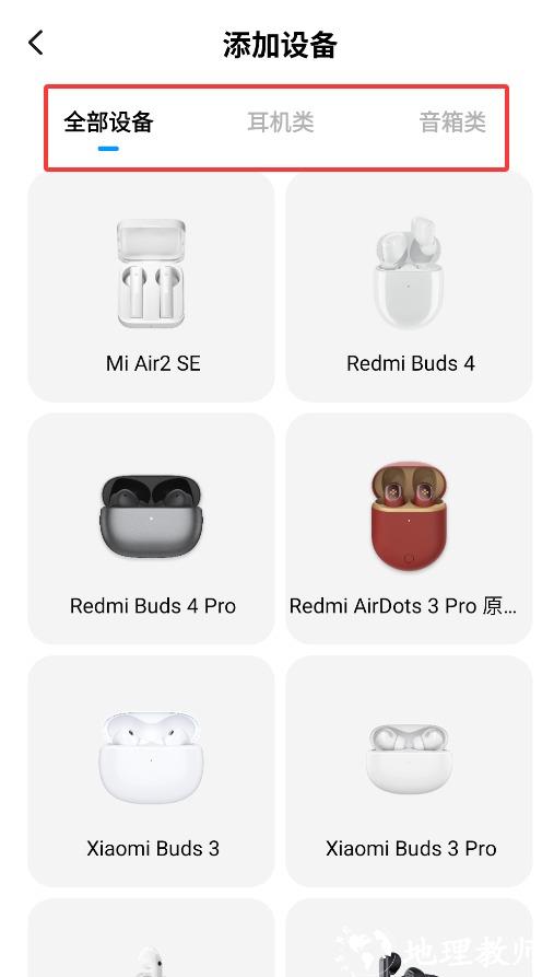 3、添加设备界面支持选择耳机类或音箱类产品类型,适配不同设备连接需求。