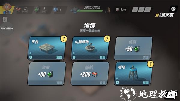 4、每击败一波敌人会获得增援选项,可依据战场实际需求,选对应增援强化战力。
