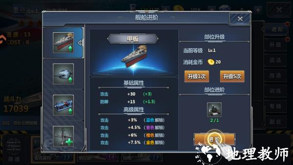 4、通过升级战舰增强实力,以此应对并战胜更强大的敌人,推进游戏关卡与剧情。