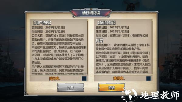 2、同意协议后点击 “进入游戏”,正式开启游戏进程,进入海战相关的游玩界面。