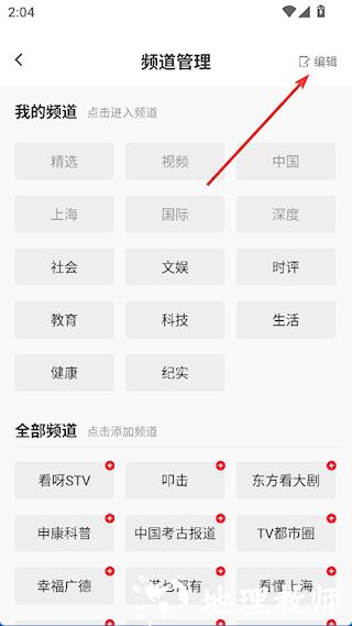 3、长按可以拖动排序,点击频道右上角黑色图标添加或删除