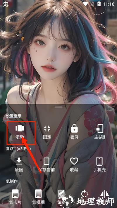 2、进入背景详情页面后,会弹出菜单,此时点击滚动选项就行。