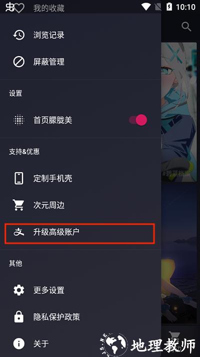 2、在菜单栏内,定位“升级高级账号”选择进入;