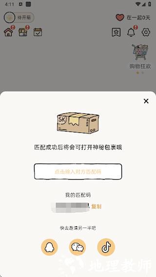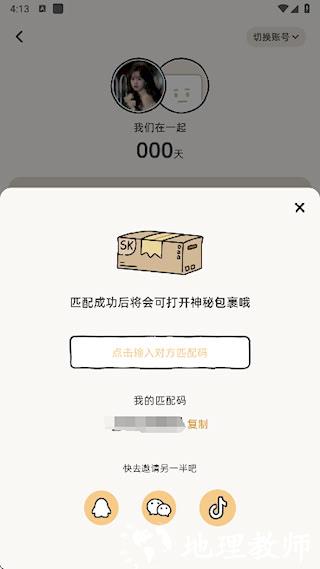 3、 可复制个人专属匹配码并通过社交应用发送给伴侣,对方使用该码即可完成双向匹配。