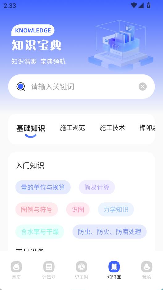 5、工程知识库:针对土方路面、砌筑装饰等多工程领域,提供丰富知识内容,供从业者随时查阅学习。