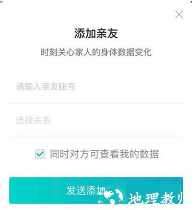 3、输入亲友的账户信息,并选择亲属关系,发送请求,待亲友确认请求后即可查看亲友的身体数据。