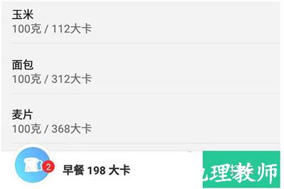 3、选择任一餐次开始记录,使用者可以填写摄入食物的重量或数量,软件将自动换算为卡路里数值,添加完成后选择右下角确认即可