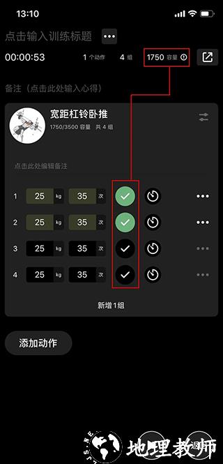 2、此时如需记录和跟踪休息时间,可点击每组后面的「计时器」图标。