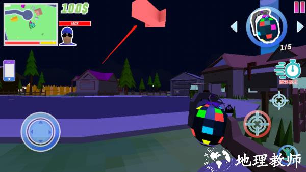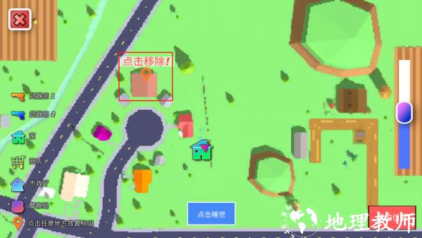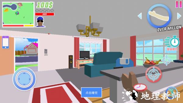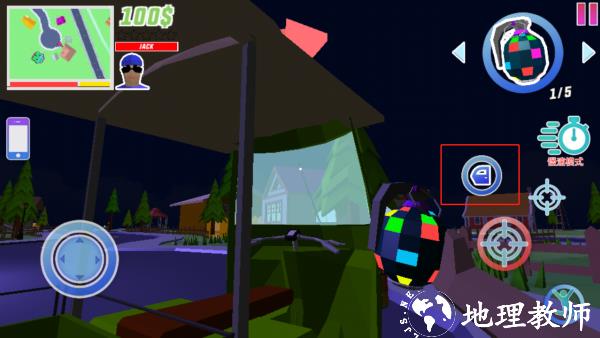 4、进入场景后,通过左下方按钮控制角色移动,右下角可进行瞄准、跳跃、转换等操作,也能点击 “睡觉” 休息。