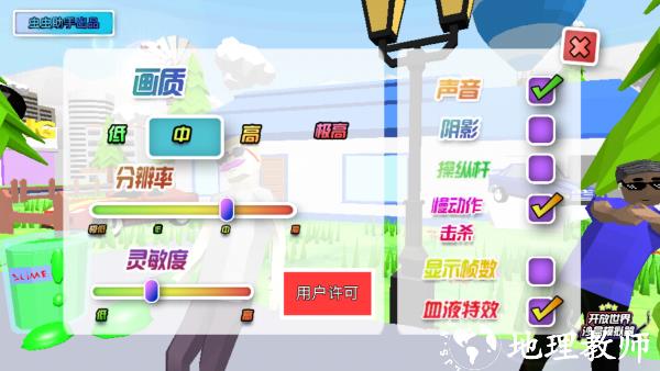2、开始前可设置画质、分辨率、灵敏度、声音、特效等参数,优化自身操作与视觉体验。