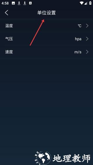 3、 打开单位设置界面,可对温度单位、气压单位和风速单位进行个性化设定。选项布局清晰直观,便于根据使用习惯调整显示参数。