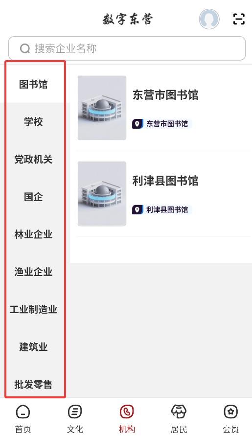 3、机构界面支持查看企业、图书馆、学校及国企等各类组织详细信息。